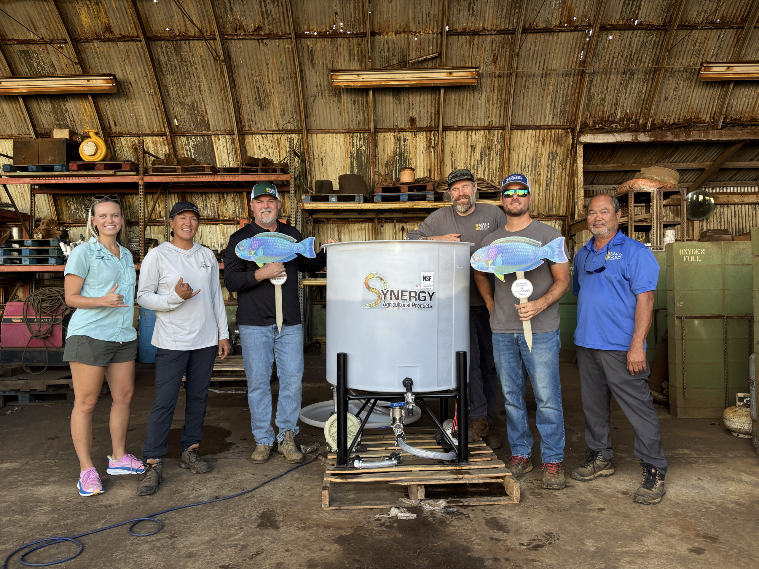 Through MNMRC’s Reef-Friendly Landscaping test plot program, Maui Gold Pineapple setup a soil amendment brewer at their farm in November 2024. The brewer will allow Maui Gold to produce the environmentally friendly product used on their RFL test plot.(Photo Credit: Maui Nui Marine Resource Council)