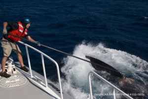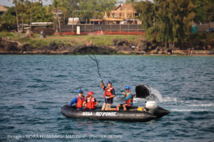 “For over 17 years the Hawaiian Islands Humpback Whale National Marine Sanctuary, working with NOAA Fisheries’ Marine Mammal Health and Stranding Response Program and the on-water community, has led a successful community-based network of experienced responders to free large whales, like the humpback whales found seasonally around Hawaiʻi, from life-threatening entanglements,” said Lyman. “As a result, the sanctuary and its partners have removed gear from more than 30 large whales and gained a wealth of information to mitigate the threat and its broad impacts.”