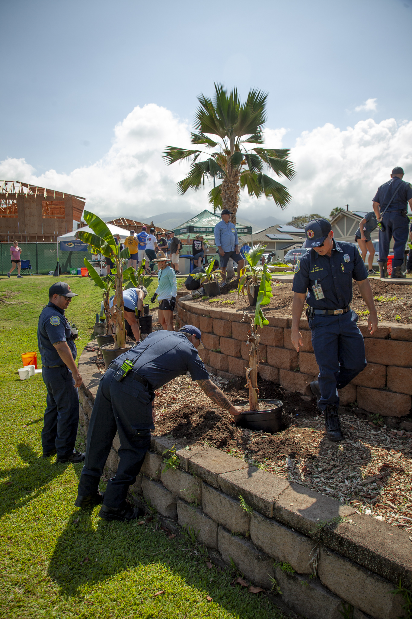 Community groups including representatives from the Maui Fire Department joined in on the planting effort. (Photo Credit: Studio Asalt and Derek Sander)