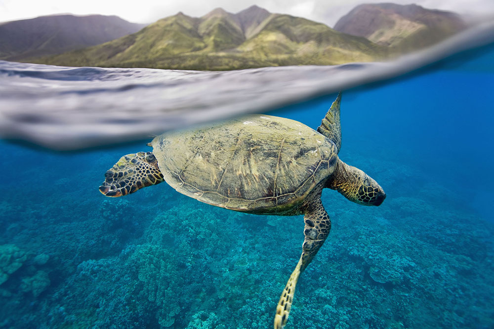 Graceful reptilian residents of Maui's coral reefs, Hawaii's sea turtles appear...