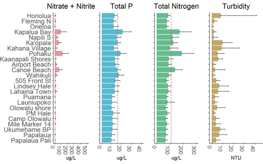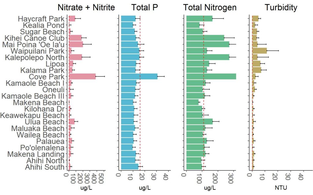 Why it is a concern: Too much nitrogen can cause an increase in invasive algae (limu), which is damaging to coral reefs.